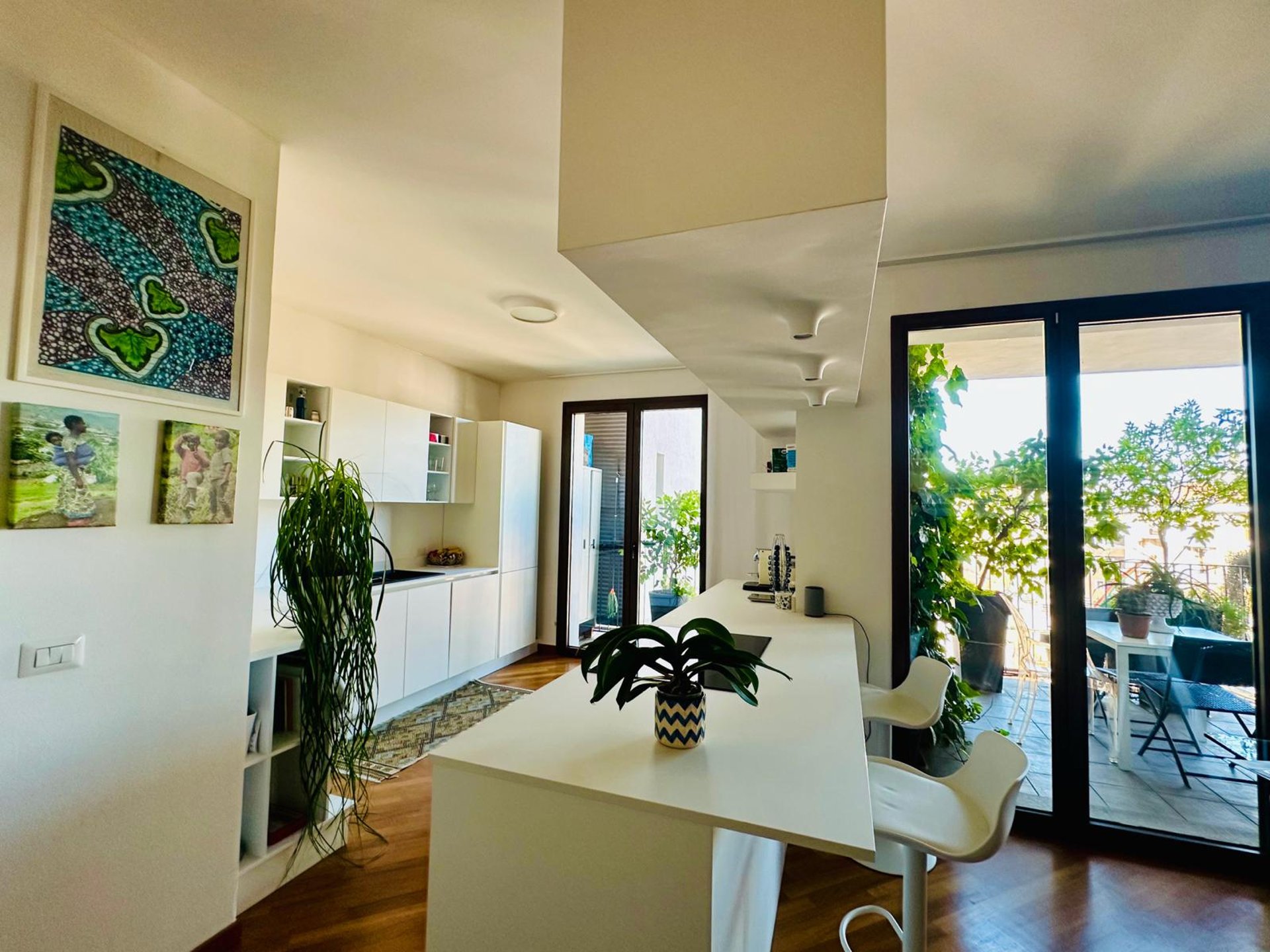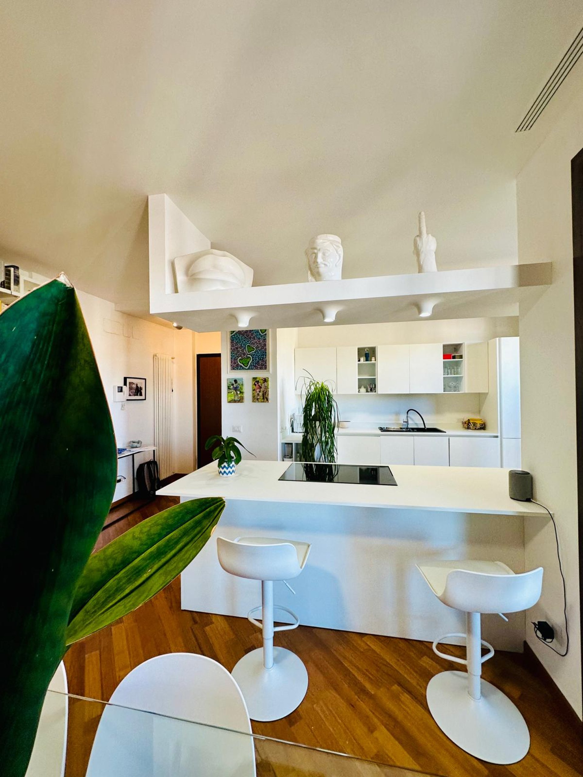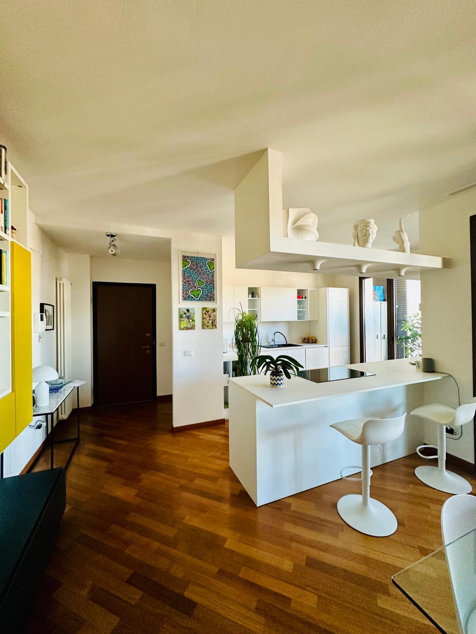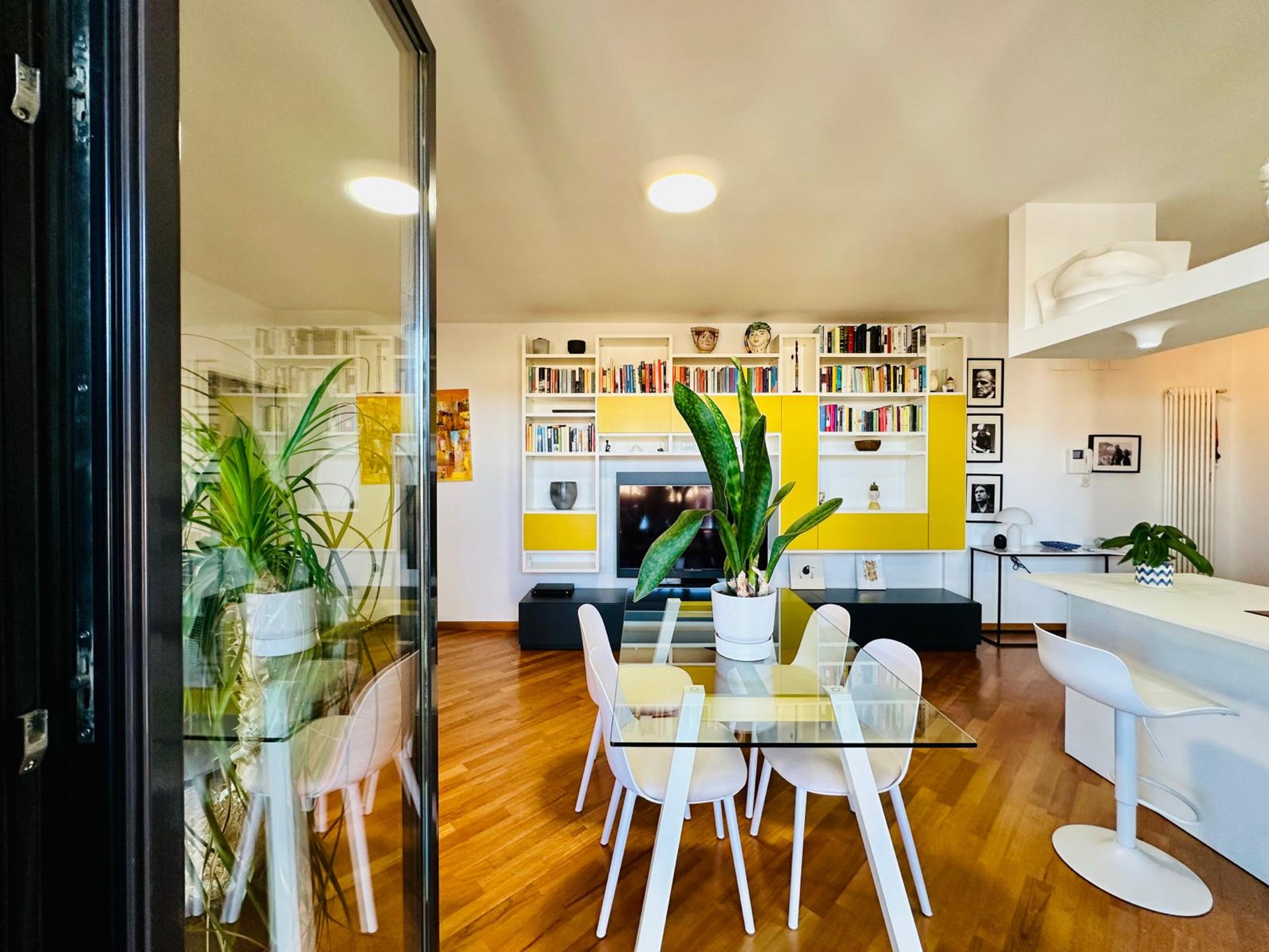 L’INGRESSO SI APRE SU UNA ZONA GIORNO AMPIA E ACCOGLIENTE, DOVE IL SOGGIORNO DIALOGA ARMONIOSAMENTE CON LA CUCINA A VISTA DAL DESIGN CONTEMPORANEO. LA PENISOLA ATTREZZATA DIVENTA IL CUORE DELLA CASA: PERFETTA PER COLAZIONI LENTE AL MATTINO, APERITIVI CON AMICI O CENE INFORMALI. LO SPAZIO È PENSATO PER ESSERE VISSUTO DAVVERO, CON UN’AREA PRANZO CONVIVIALE E UNA CONFORTEVOLE ZONA RELAX CON GRANDE DIVANO, LIBRERIA E TV CHE CREANO L’AMBIENTE IDEALE PER MOMENTI DI QUIETE O PIACEVOLI SERATE IN COMPAGNIA.