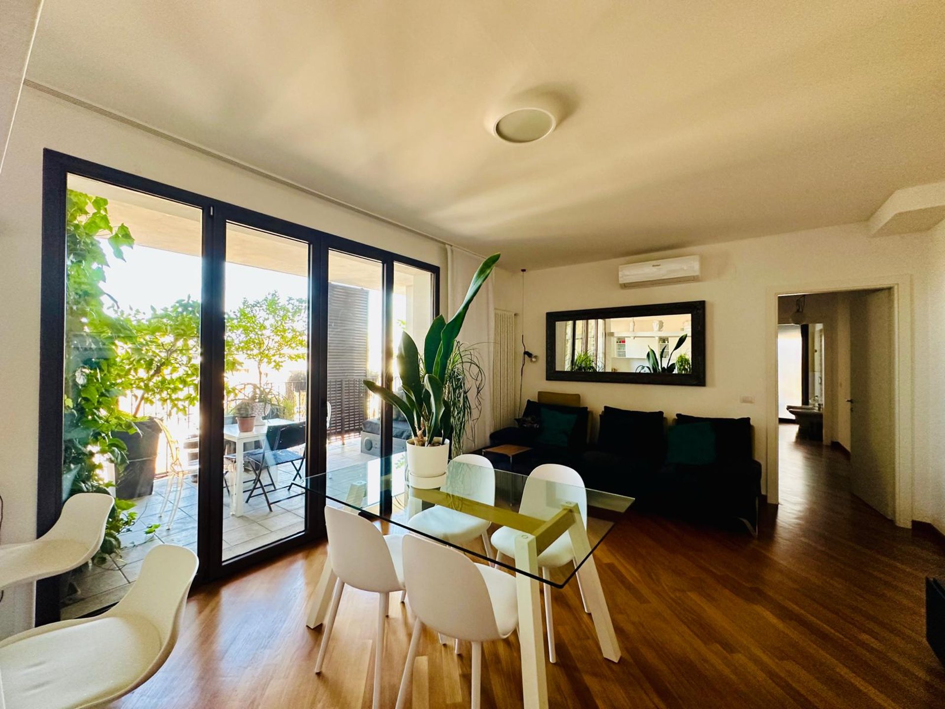 IL VERO VALORE AGGIUNTO È LO SFOGO ESTERNO: DAL SOGGIORNO SI ACCEDE A UN TERRAZZO AL PIANO DI 15 MQ CHE PROSEGUE IN UN BALCONE LUNGO TUTTA L’ABITAZIONE. IN CORRISPONDENZA DELLA ZONA LIVING LO SPAZIO SI AMPLIA, TRASFORMANDOSI IN UNA VERA OASI URBANA CON TAVOLO DA PRANZO E ZONA LOUNGE, IMPREZIOSITA DA UNA VISTA APERTA SUI TETTI DELLA CITTÀ. UN’ESTENSIONE NATURALE DELLA CASA, DA VIVERE IN OGNI STAGIONE.